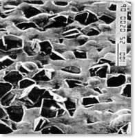 The reamers from TAKEZAWA-SEIKI are electrodeposited abrasive grain reamers with the electrodeposition of diamonds or borazon CBN materials. A countless number of electrodeposited abrasive grains are used to grind a workpiece, thereby reducing the cutting resistance of each individual abrasive grain, enabling us to achieve extremely precise machining accuracy in a stable manner. Furthermore, exceptionally precise polishing with a Single-Pass is possible due to of the extremely high material extraction rates of diamond and borazon CBN materials used as abrasive grains.